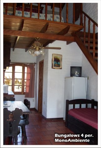 Los alojamientos tienen capacidad hasta 4 personas son mono ambiente poseen una cama matrimonial en el entrepiso y una cama marinera en el estar. Están equipados con TV cable, aire acondicionado, heladera y microondas.
